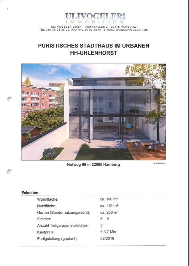 .........................................................................................................Außergewöhnliches und modernes Neubauprojekt mit nur 6 Wohneinheiten in Hamburg - Eimsbüttel - Brehmweg 67, 22527 Hamburg